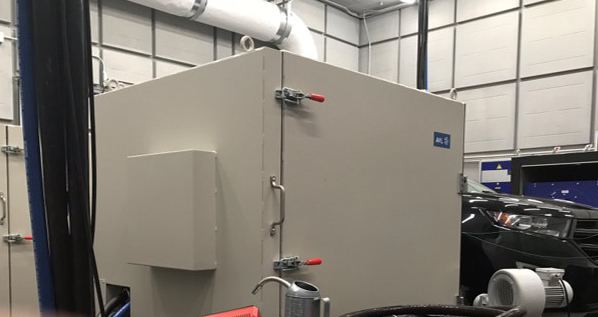 In cases where constraints place the wheel dynamometer inside the chamber, these IAC Acoustics enclosures control the dyno sound to provide optimization of the powertrain and driveline component testing.