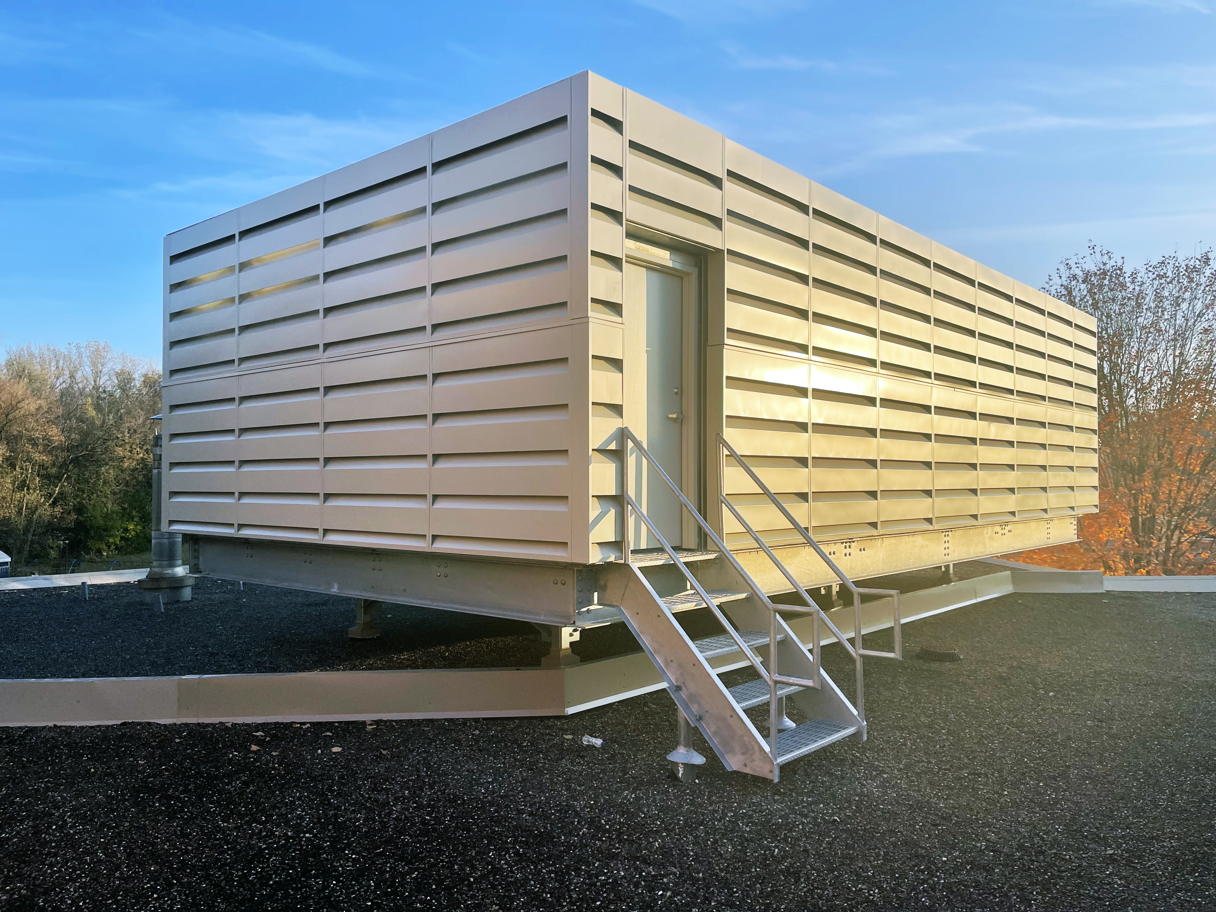 QuietStar Industries designed and installed a 3-sided IAC Noishield Regular wall using galvanized construction and panels having an STC 40 and NRC 0.95.